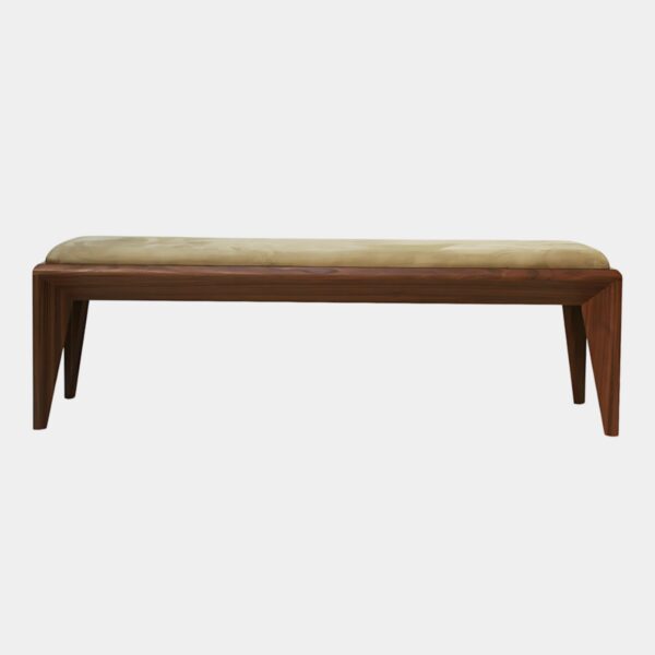 O assento acolchoado oferece não apenas conforto, mas também um contraste visual interessante com a madeira, proporcionando uma experiência de uso agradável e ao mesmo tempo sofisticada. Disponível em diversas opções de revestimentos, como couro natural e tecidos premium, o estofado se adapta às preferências de estilo e funcionalidade do usuário, tornando o banco uma escolha versátil para compor ambientes como halls de entrada, salas de estar, dormitórios ou até mesmo espaços comerciais que busquem uma combinação de elegância e aconchego.
