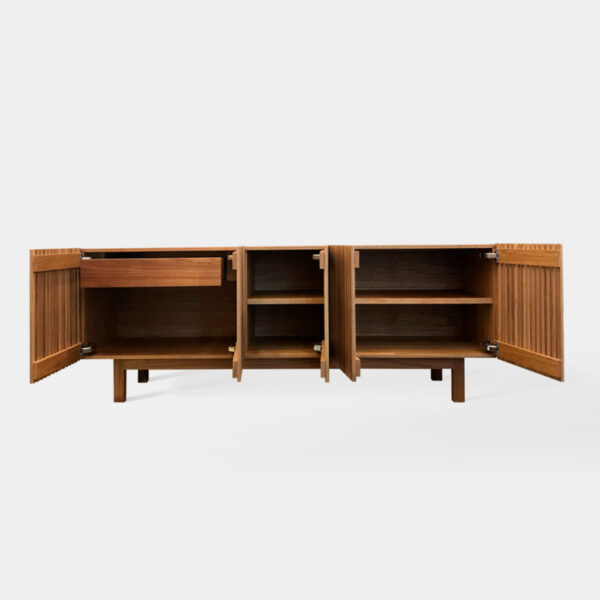 Um de seus grandes sucessos é o Buffet Lina, homenagem aos traços modernistas da arquiteta Lina Bo Bardi, que projetou na capital paulista o Museu de Arte de São Paulo, MASP, inaugurado em 1968. Alessandra Delgado também desenhou o aparador Lina, para reverenciar este ícone da arquitetura brasileira. “A peça se inspira na ideia do vão livre do MASP”, conta a designer. Além da elegância, a funcionalidade é característica importante em suas criações, assim como a beleza. “Um design atemporal permanece interessante sempre”, destaca.