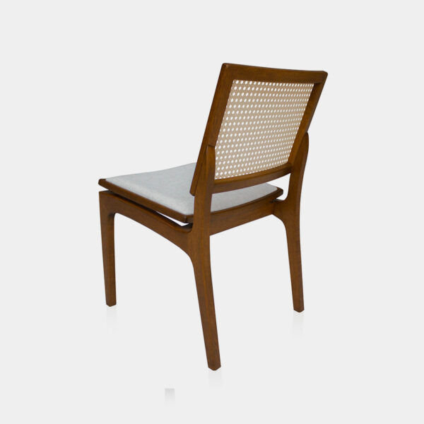 A cadeira Amélia possui a representação da elegância a partir do desenho dos seus pés posteriores, os quais se encontram em harmonia com o encosto. Seu assento levemente curvado parece flutuar sobre a sua estrutura, garantindo um toque de sofisticação. Seu encosto é produzido unicamente em palha, enquanto o assento pode ser estofado ou em palha.