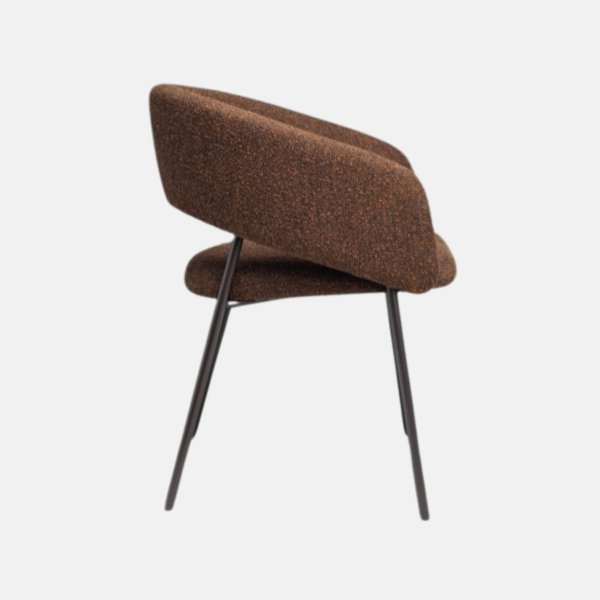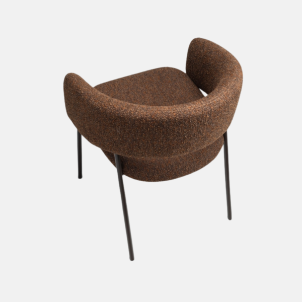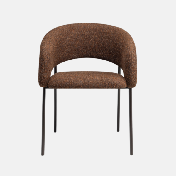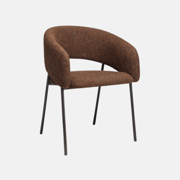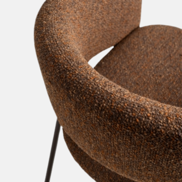 A cadeira Arco une conforto e leveza visual. Seu espaldar curvo envolve suavemente o usuário, promovendo ergonomia e bem-estar. O recorte no encosto confere dinamismo à silhueta. O assento estofado, generoso e acolhedor, garante conforto prolongado, enquanto a base metálica com quatro pés delgados assegura estabilidade com um toque de sofisticação. Inspirada no estilo Japandi, a peça se integra com naturalidade a diferentes composições, valorizando ambientes residenciais e corporativos com elegância discreta.