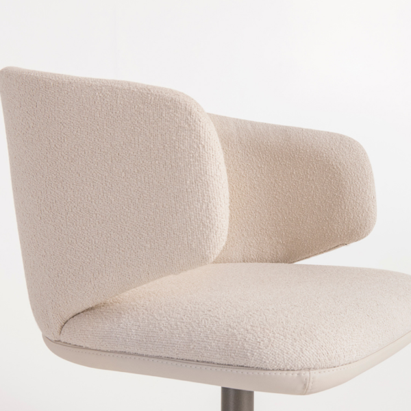 A cadeira Bend surgiu de um emaranhado de traços arredondados e da intenção de entregar conforto e leveza. Seu estofamento anatômico e assento macio transmitem uma sensação envolvente. Seu nome vem de “bend”, técnica muito utilizada em instrumentos de corda que consiste em levantar a corda formando um arco para mudar uma nota de seu tom para um tom mais agudo, e seu símbolo na partitura é exatamente o arco encontrado na costura do encosto da cadeira.