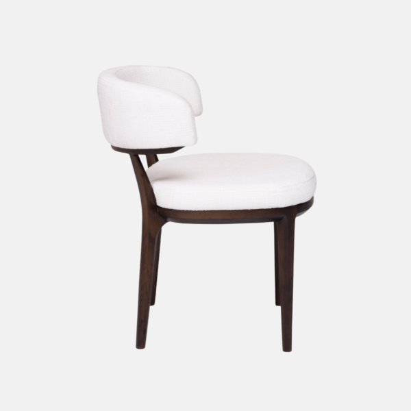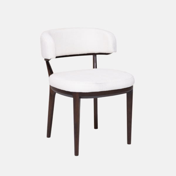 Cadeira estofada. Estrutura em madeira tingida.
