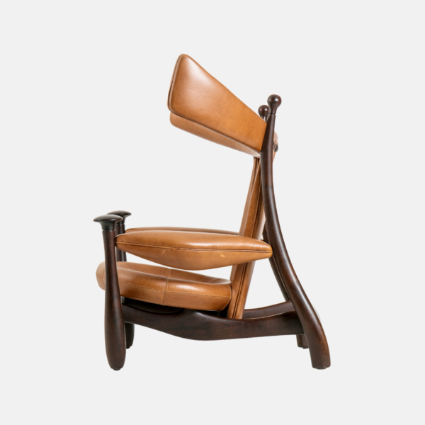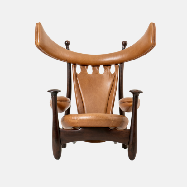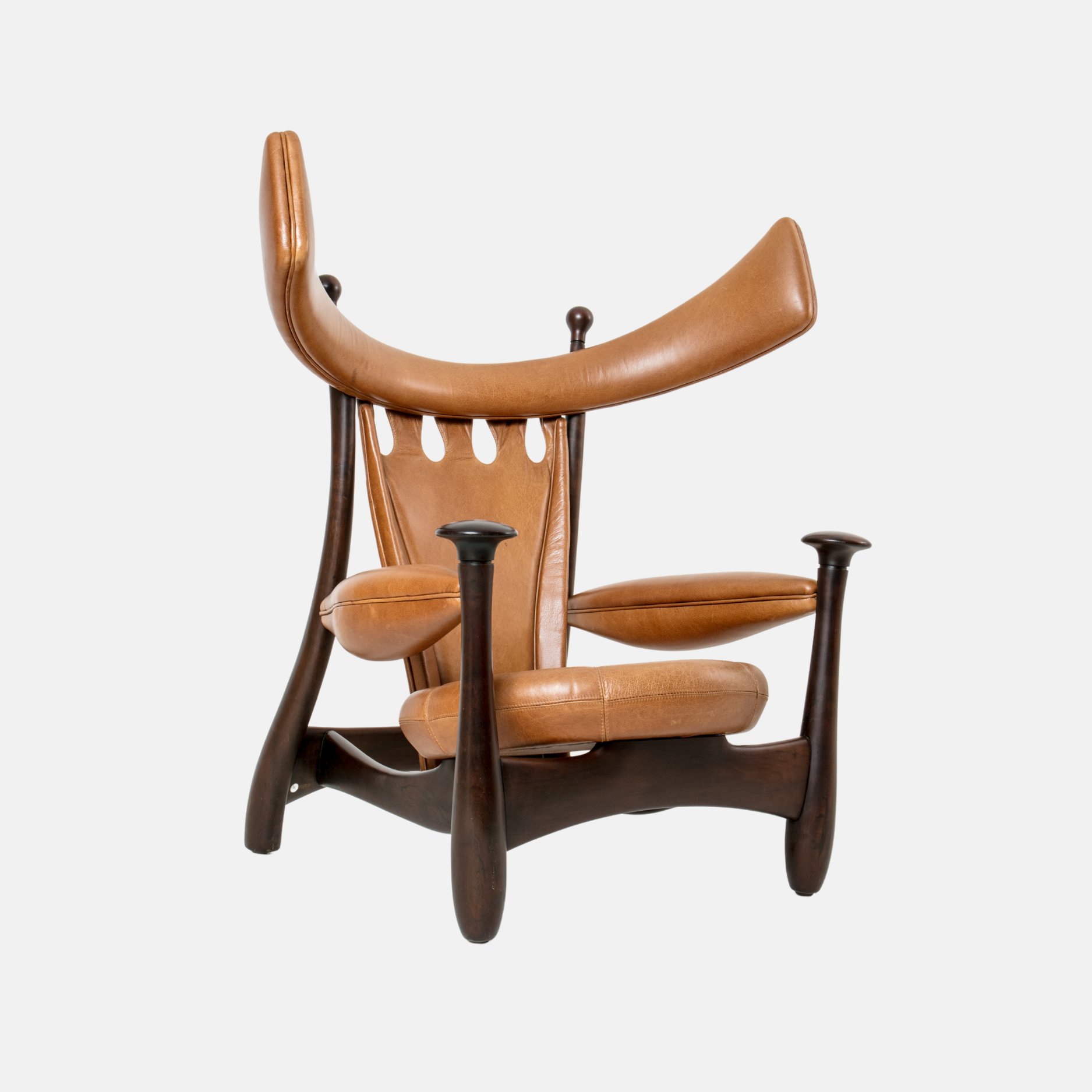 Daí veio também o nome Chifruda. Um encosto de cabeça com aquele formato acentuado. O que aconteceu é que fiz essa cadeira e o pessoal achou muito estranho aquilo, sabe? E eu achando muito gozado. Naquele tempo, os puros acharam aquela coisa um pouco estranha. Uma falta de gosto. Eu que não tenho nada a ver com isso, né? Eles gostarem ou não já não era um problema meu. A intenção não era essa.