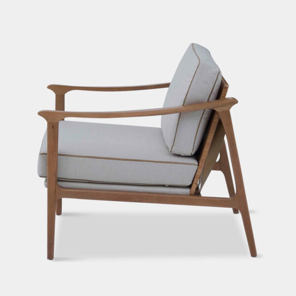 Os braços de linhas orgânicas dão suporte para o apoio do corpo e o estofado do encosto e assento o conforto necessário para uma experiência única.