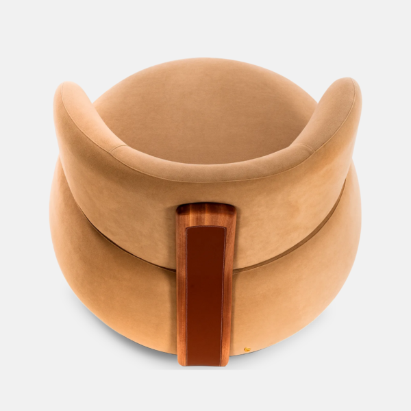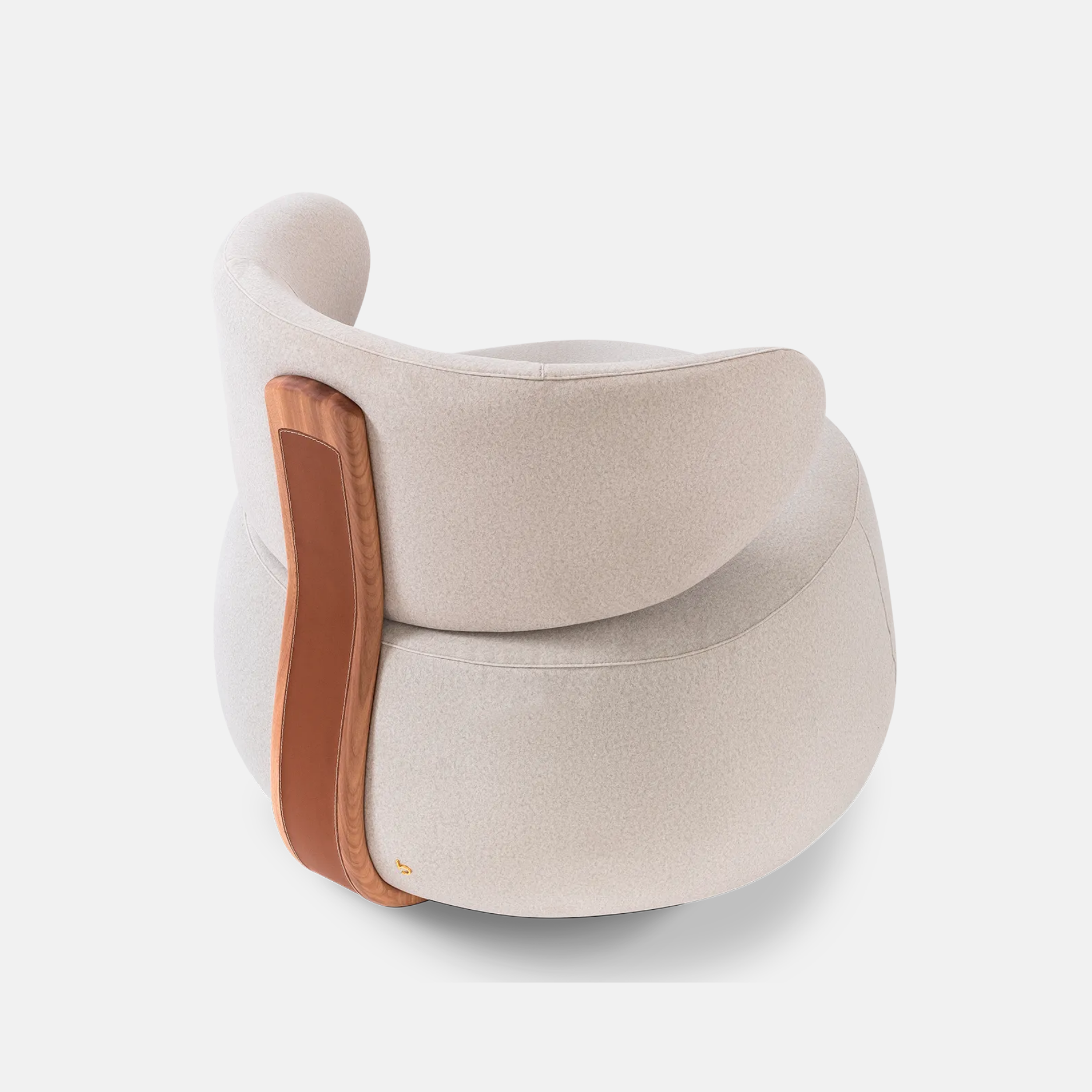 Concebida para ser uma mistura entre as categorias de puff e poltrona, a poltrona giratória Pouso é um voo de liberdade criativa sobre as convenções. Seus criadores, Leonardo Lattavo e Pedro Moog, encontram justamente na ideia de hibridismo uma das suas principais estratégias de criação. Com várias opções de cor, esta compacta poltrona, feita com madeira maciça e estofamento, é extremamente versátil e se adapta bem a qualquer ambiente.