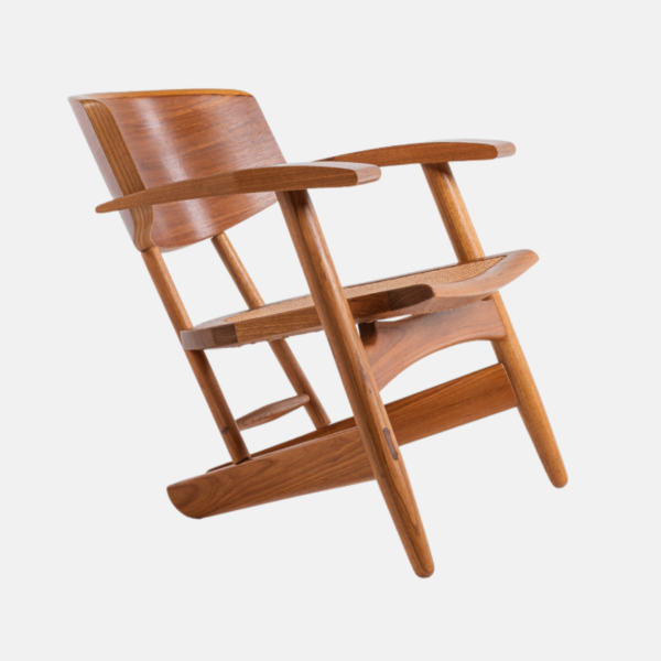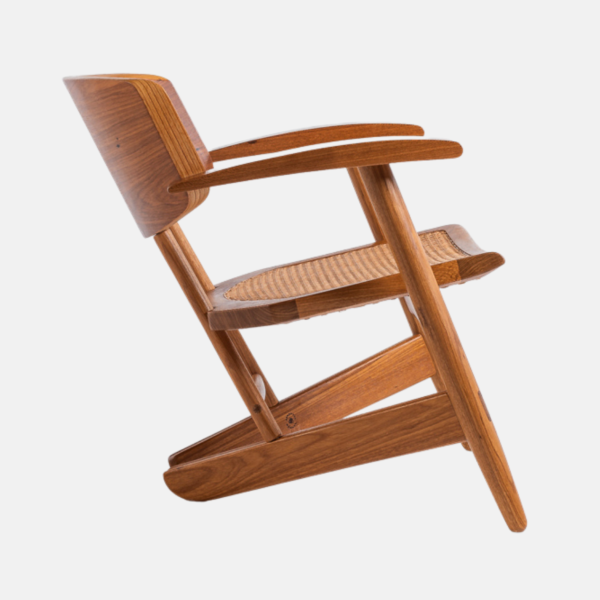 A poltrona Santos Dumont é um dos clássicos de Fernando Mendes, que idealizou esta peça para homenagear sua reverência a um dos maiores inventores da história: Alberto Santos Dumont. A poltrona Santos Dumont é de 2006, foi criada para comemorar os 100 anos do voo do 14 Bis, o primeiro voo mecânico da história. A peça parece pronta para voar. Sua estrutura em freijó remete às formas do Demoiselle, o primeiro avião construído em série no mundo. O assento de palhinha adiciona um charme para esta criação e é também uma referência aos cestos que Dumont instalava na posição de pilotagem de seus aparelhos.