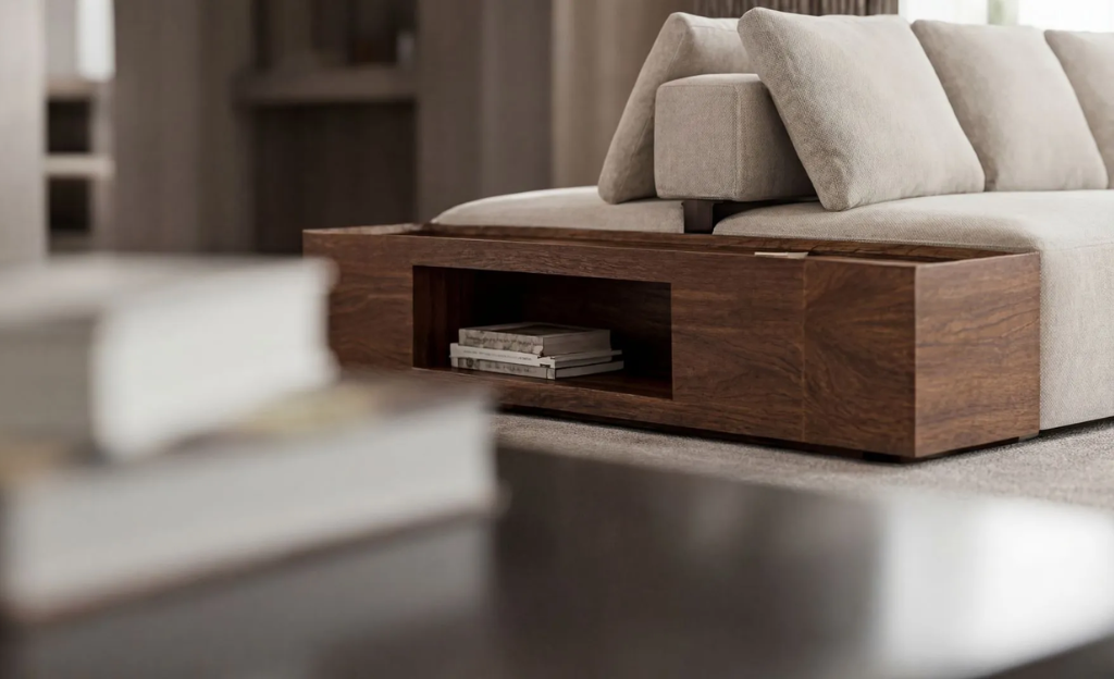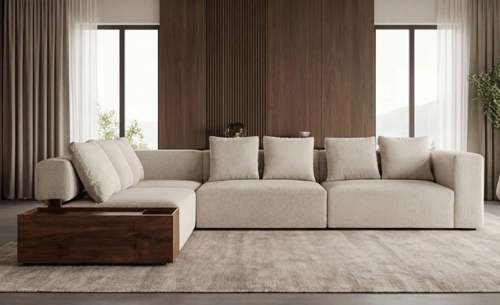 Myrtos nasce como uma paisagem habitável — um sistema de formas mutáveis onde conforto e engenho convergem. Seu nome evoca mitos antigos, mas seu propósito é absolutamente contemporâneo: reinventar o modo como vivemos o tempo dentro de casa. Módulos generosos desenham ilhas de acolhimento, enquanto encostos móveis, ajustáveis por sistema manual, motorizado e eletromagnético, permitem experiências sempre renovadas. Aqui, cada gesto, cada uso, é uma descoberta. A arquitetura do sofá se estende em elementos de madeira e couro soleta natural que incorporam elegância funcional: gaveta oculta, porta-acessórios discreto, superfícies de apoio em mármore com pontos de energia integrados, nicho para livros — onde a beleza e a utilidade coexistem com naturalidade. Myrtos é, assim, um convite a habitar o conforto em sua forma mais inteligente e sensível.