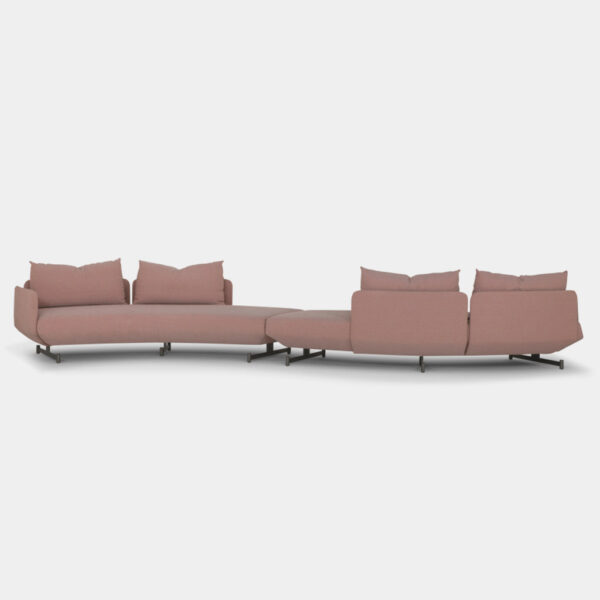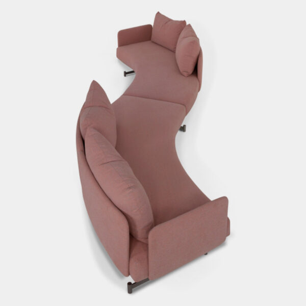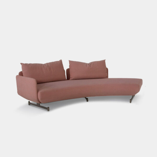 A planta aquática Vitória Régia, com suas lendas, histórias e mistérios, típica da Amazônia e muito usada no paisagismo de Burle Marx; foi a inspiração para o sofá Régia, que retrata a flora de forma leve e exótica. Seu formato curvo e modular, possibilita a peça crescer e fazer diversas curvas, que em conjunto com a chaise redonda e duas poltronas giratórias é perfeita para grandes lobbys, halls e salas, além de poder ser usada como peça individual. O encosto do sofá com laterais que abraçam a estrutura de forma delicada e prismática, trazem um contraponto a forma toda curva da linha Régia.